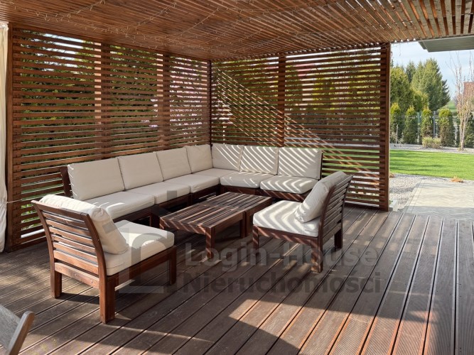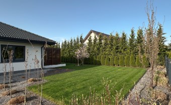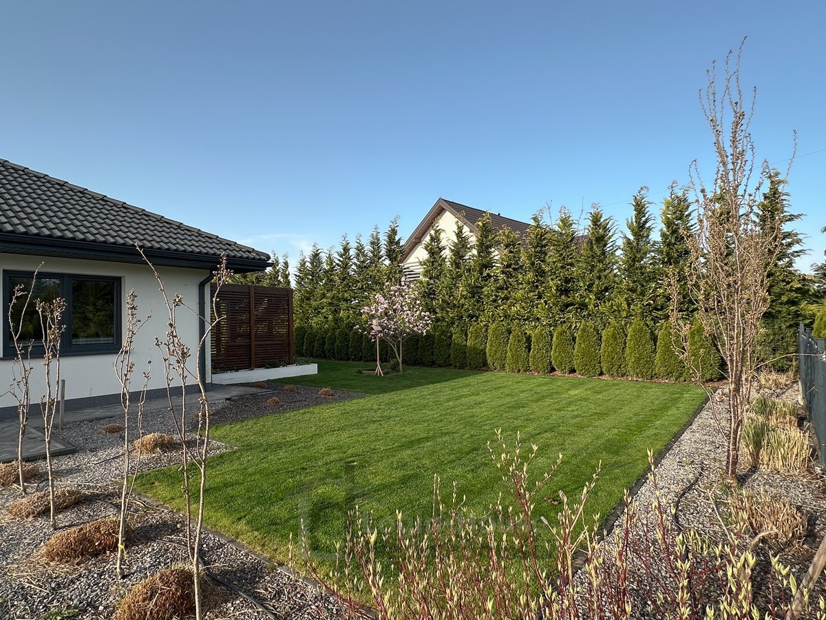 Działka jest ogrodzona ( automatyczny napęd bramy wjazdowej i garażowej ), zagospodarowana posiada system automatycznego nawadniania. Ogród ma wydzieloną strefę wypoczynkową oraz miejsce na przydomowy warzywniak.