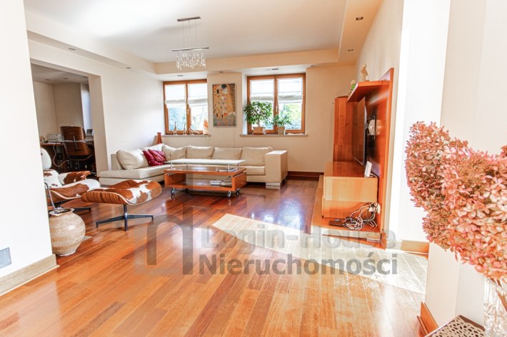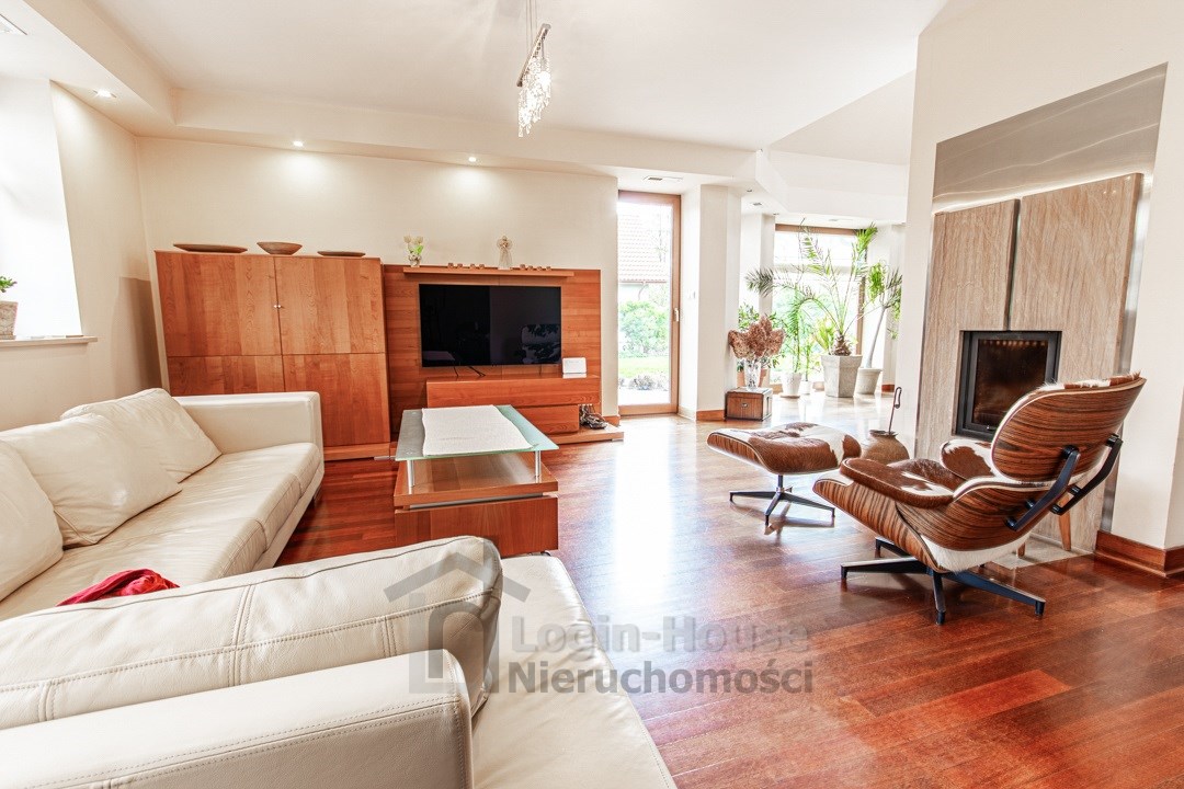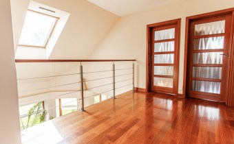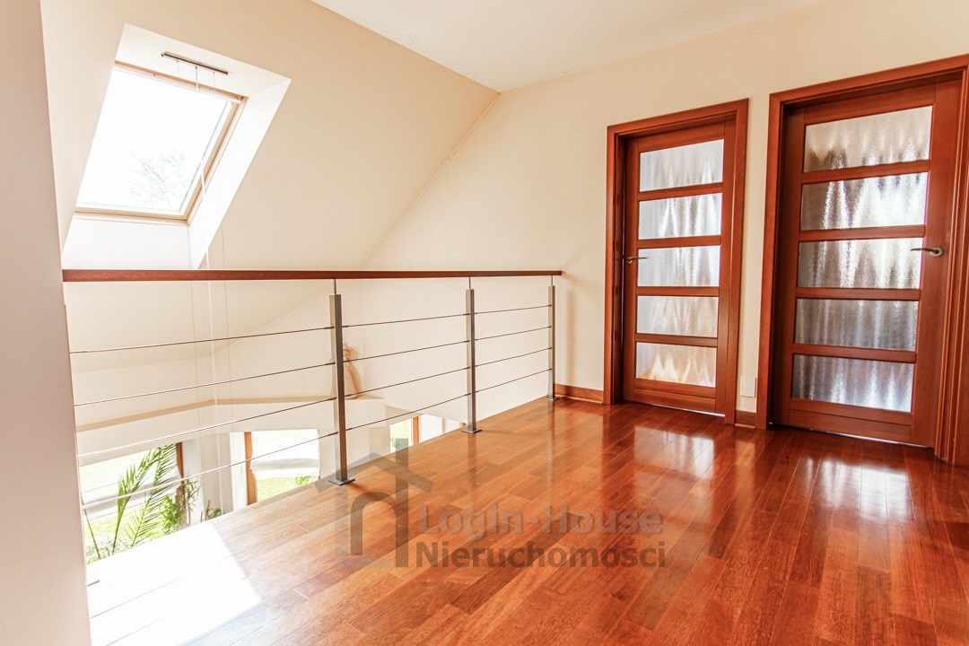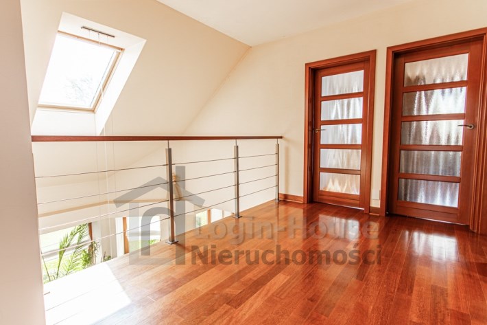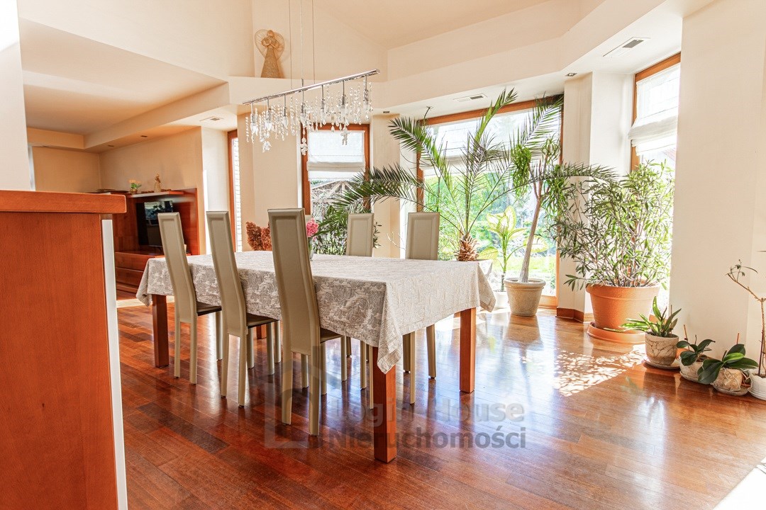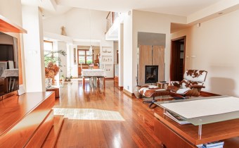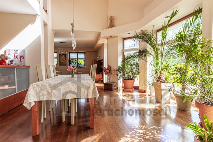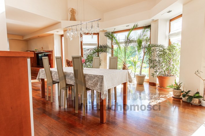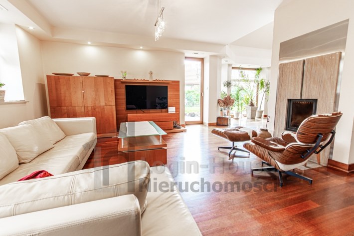 Dom urządzony z dbałością o detale, wyposażony w włoskie meble (większość zostaje w cenie), drewniane podłogi Merbau w pokojach, ogrzewanie podłogowe w łazienkach, a także szyby P4 na parterze dla większego bezpieczeństwa. Duże przeszklenia dodają przestrzeni i pięknie doświetlają przestrzeń dzienną.
