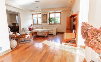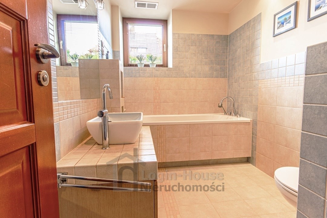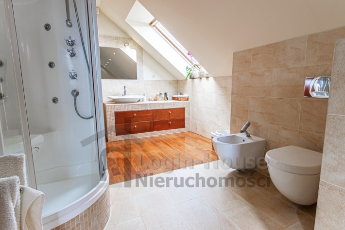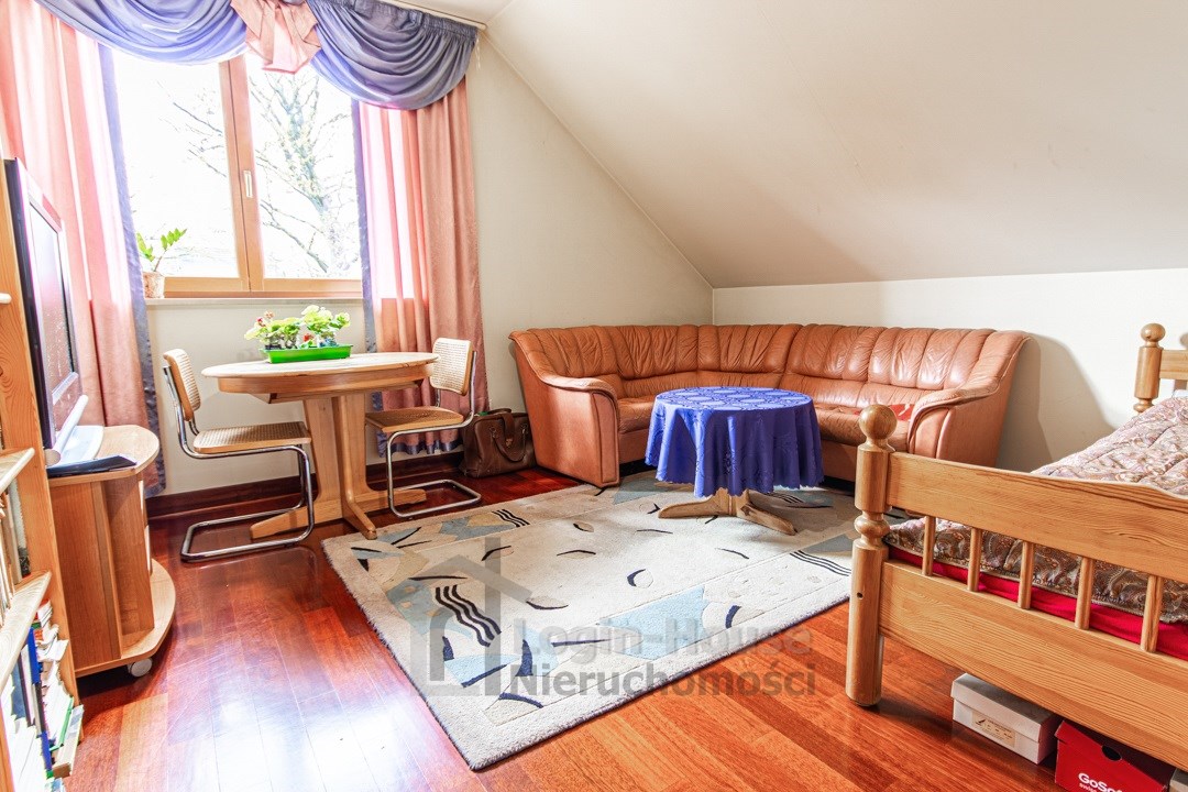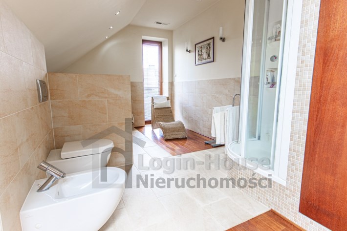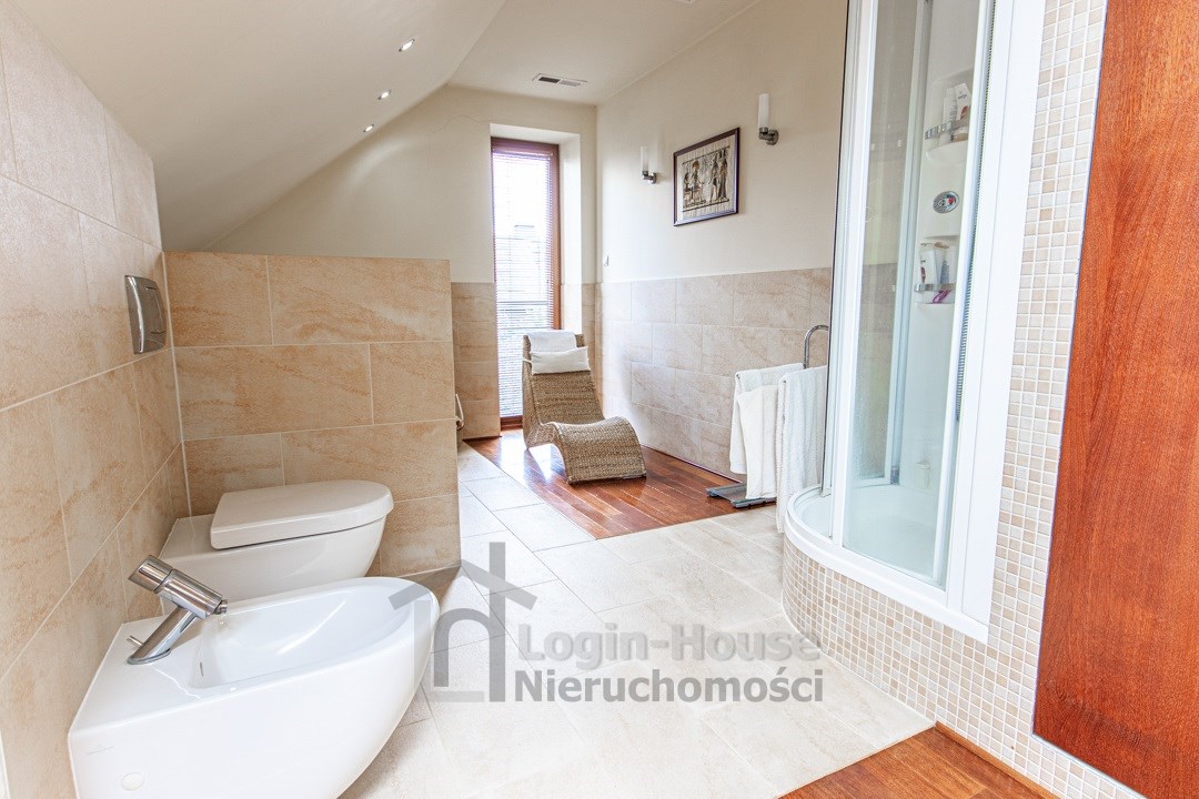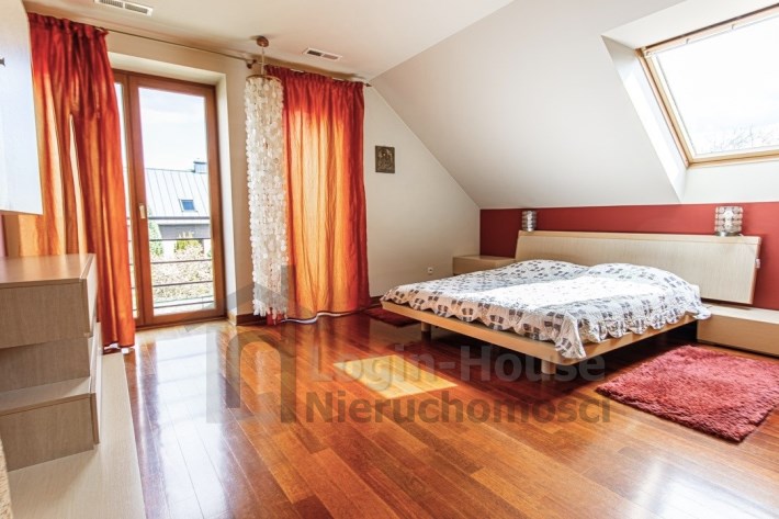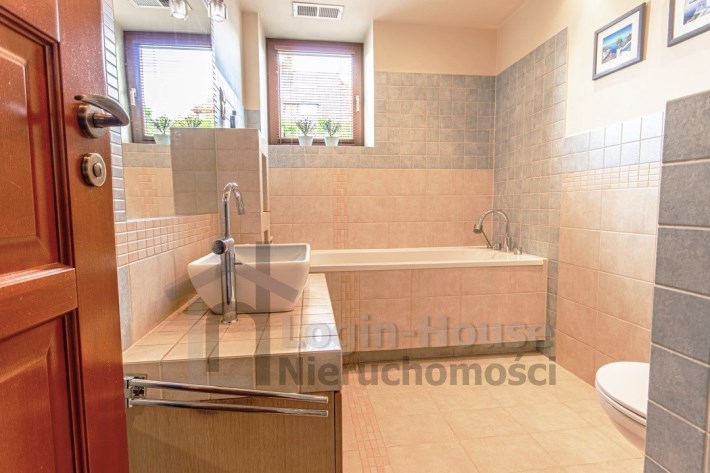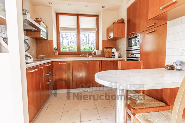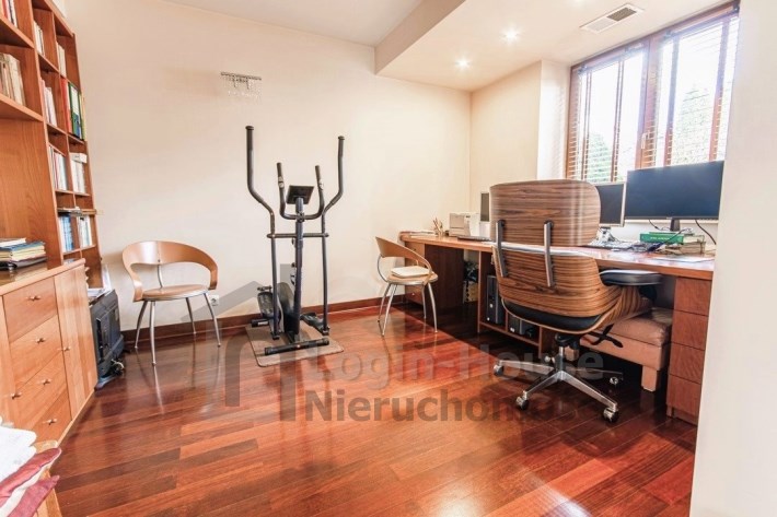 Dom urządzony z dbałością o detale, wyposażony w włoskie meble (większość zostaje w cenie), drewniane podłogi Merbau w pokojach, ogrzewanie podłogowe w łazienkach, a także szyby P4 na parterze dla większego bezpieczeństwa. Duże przeszklenia dodają przestrzeni i pięknie doświetlają przestrzeń dzienną.