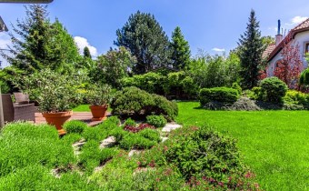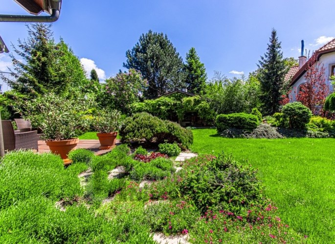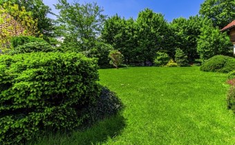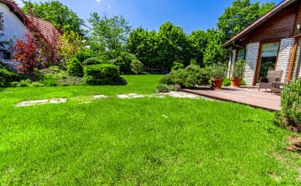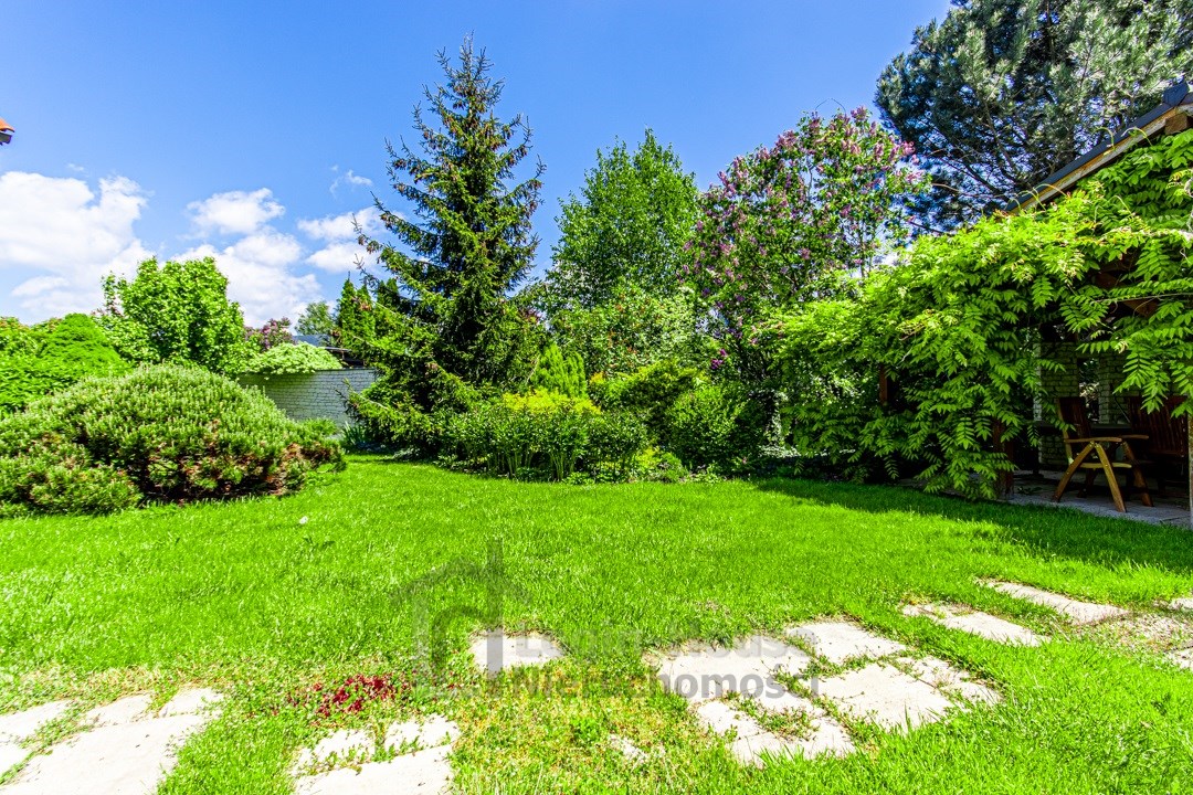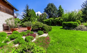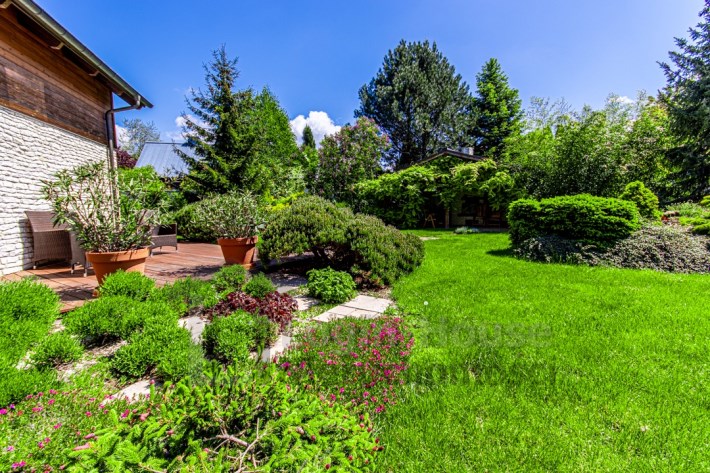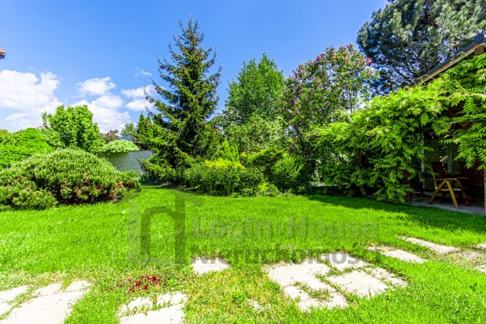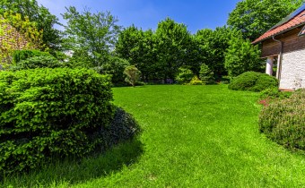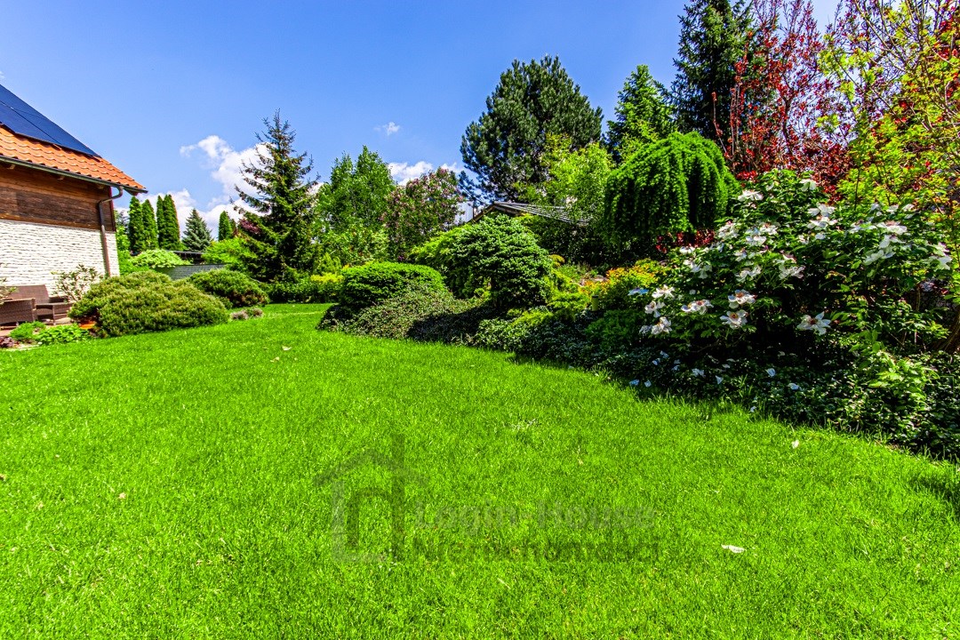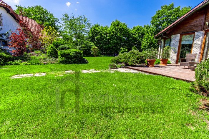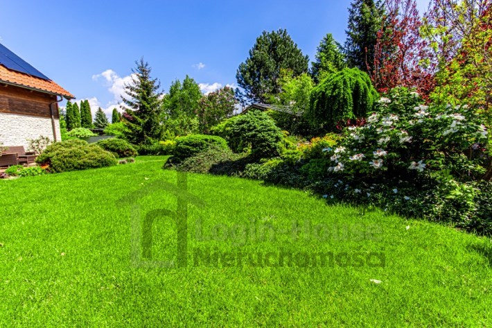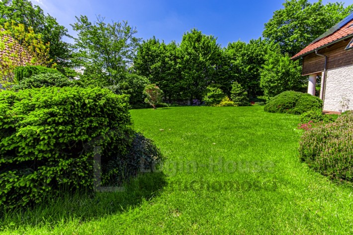 Działka jest w pełni zagospodarowana i ogrodzona – z przodu ogrodzenie z kamienia i drewna, z tyłu domu solidny mur kamienny. W ogrodzie znajduje się duża altana kryta blachą miedzianą, automatyczne nawadnianie oraz oświetlenie, które tworzy niepowtarzalny klimat.