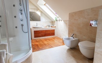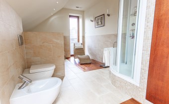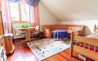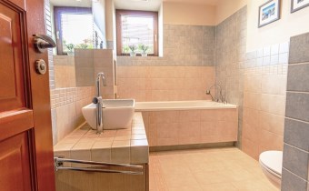 Piętro: 3 duże sypialnie, pralnia, łazienka z wanną i prysznicem.