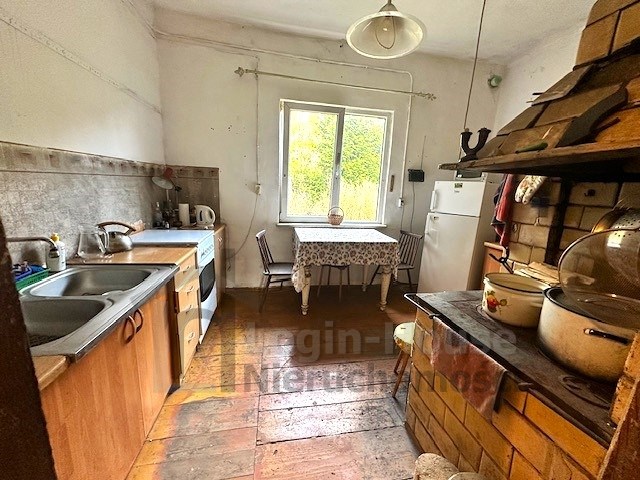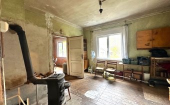 Dom o pow. 88 m² jest drewniany, częściowo podpiwniczony, otynkowany supremą posiada dobudowaną część frontową ( ganek) w dobrym stanie - wymaga remontu.