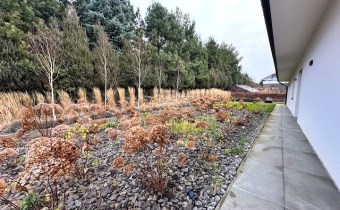 Parterowy, wolnostojący dom który łączy w sobie nowoczesny design inteligentne technologie i luksusowy komfort życia. To nieruchomość w której każdy detal ma znaczenie - od 125 metrowej przestrzeni dziennej z dwoma salonami kuchnią i jadalnią po ogród zaprojektowany jak prywatne SPA z basenem przelewowym i strefą jacuzzi.