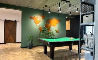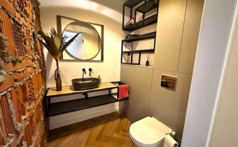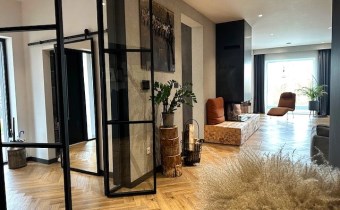 Loftowy charakter duże przeszklenia, surowy beton, czerwona cegła, metalowe elementy dekoracji i umeblowania, widoczne instalacje tworzą wnętrze w którym codzienność ma wyjątkowy rytm.