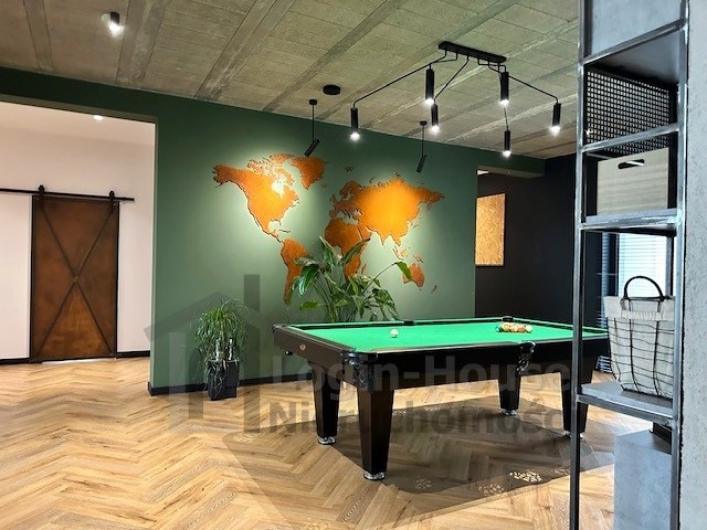 - dwa salony rekreacyjny i ze strefą multimedialną tworzą wraz z kuchnią i jadalnią imponującą 125 metrowa przestrzeń