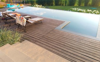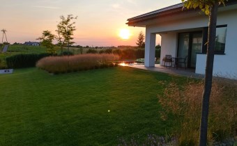 - duże przeszklenia otwierają wnętrze na rozległy taras z zejściem do basenu