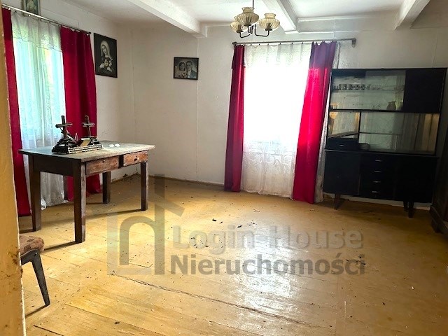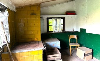 - budynek mieszkalny o pow. 60 m²  - wolnostojący, drewniany, niezamieszkany, do rozbiórki lub generalnego remontu