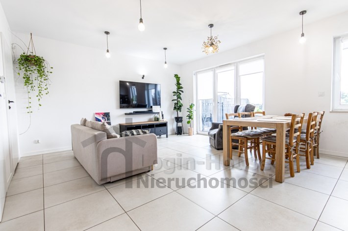Już od progu wita Cię otwarta przestrzeń typu open space, łącząca salon, jadalnię i kuchnię. To serce domu – urządzone w minimalistycznym, skandynawskim stylu, pełnym jasnych barw, naturalnych materiałów i funkcjonalnych rozwiązań. Duże jasne gresowe płyty na podłodze nie tylko powiększają optycznie wnętrze, ale idealnie współgrają z ogrzewaniem podłogowym, które znajduje się w całym domu.