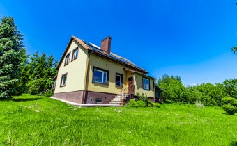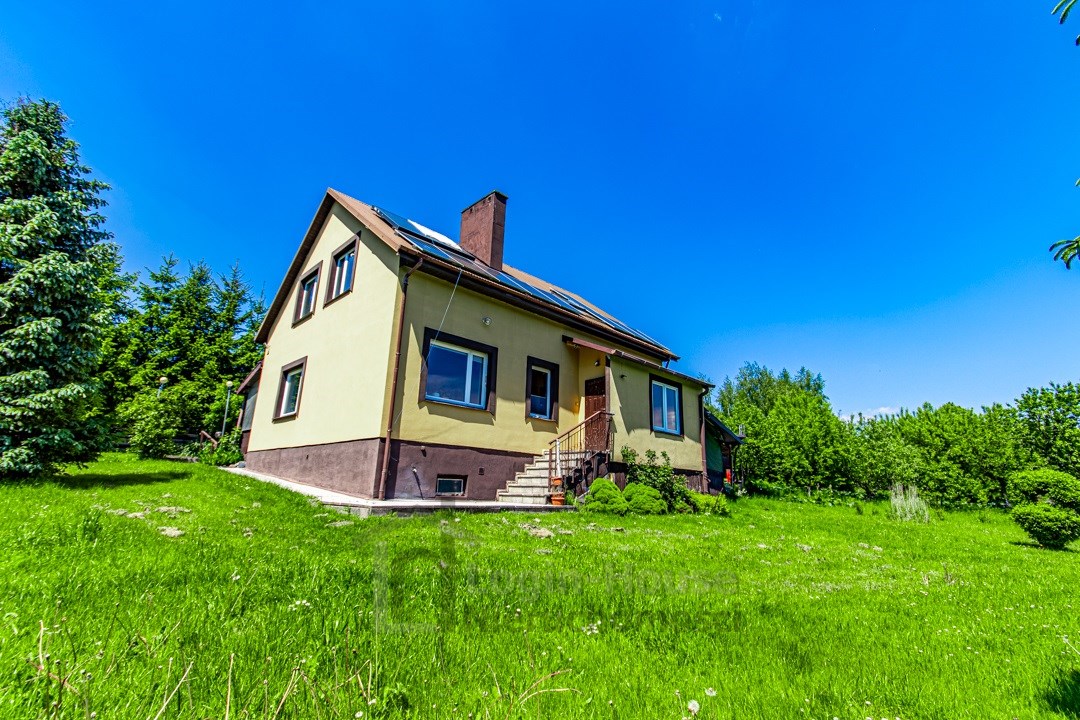 Dom w całości podpiwniczony. Ogrzewany piecem na pelet. Ciepła woda z solarów.