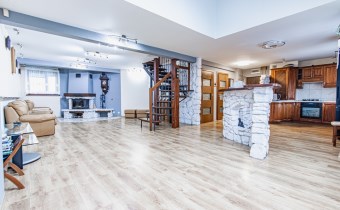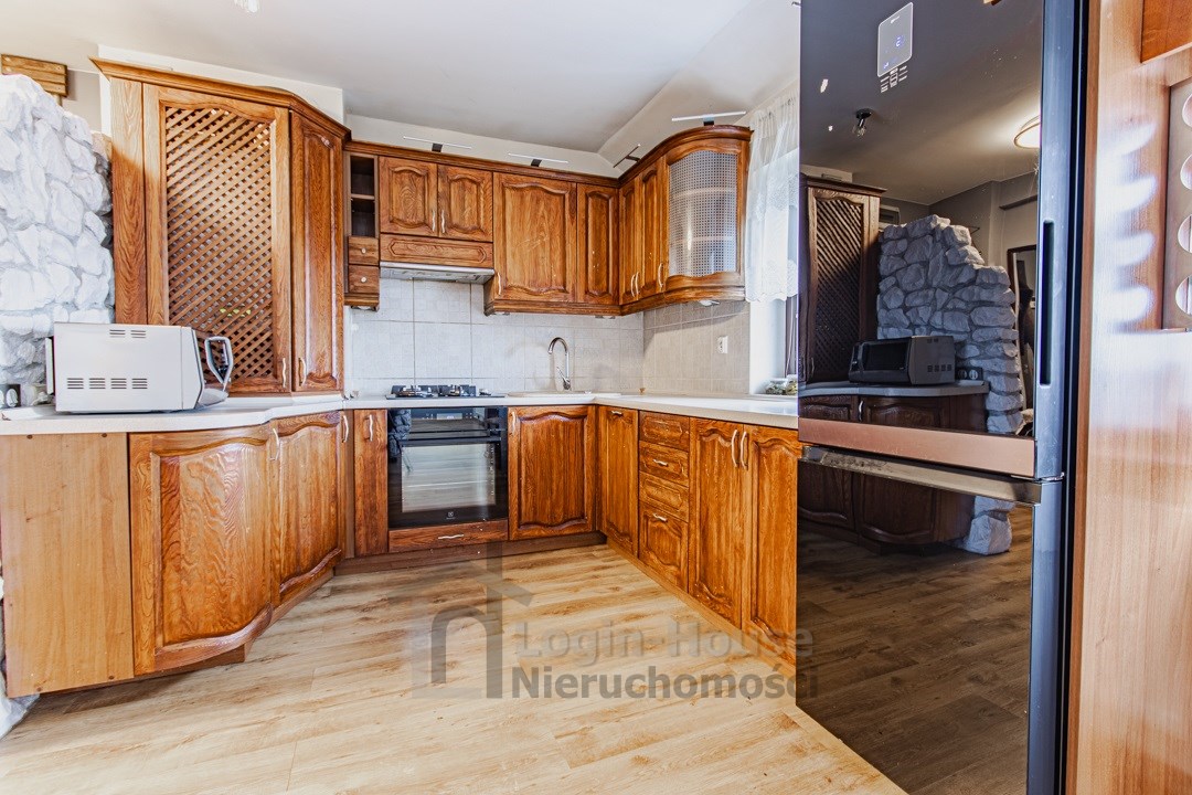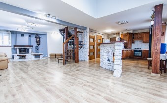 kuchnia oraz kominek wykończone naturalnym kamieniem